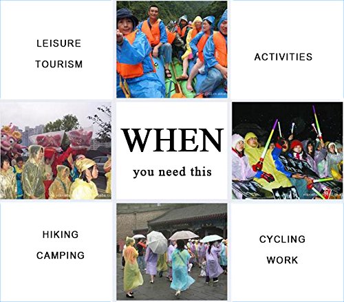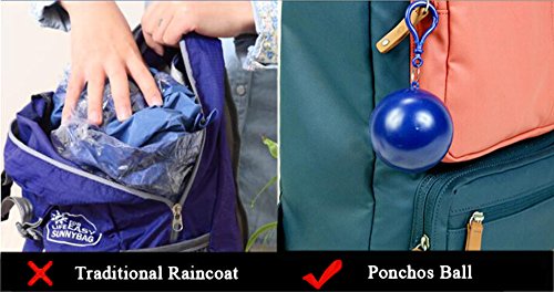 -. Feature : ★ Premium Material - The disposable raincoat made of biodegradable material and the poncho ball made of plastic are of high quality, environmentally friendly, durable and waterproof / ★ Multiple Uses - Suitable for different bags, such as schoolbag, briefcase, traveling bag and so on; especially suitable for the areas where it often rains / ★ Perfect Experience - An emergency ponchos ball with no damage to the environment could bring you an affirmatory protection against the precipitate rain / ★ Nice Gift - Such a convenient raincoat ball would be a nice gift for your family, friends and colleagues, it can provide attentive protection for the gift owner just like you were right behind him/her / ★ Easy Carriage - The ball is small enough to hold in hands. You can clip them onto your backpack, purse and belts so that you can do things without heavy burden. Fast and easy dressing within 1 minute when it rains all of a sudden