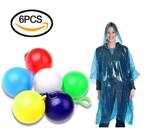 -. Title : 6 Pcs Disposable Raincoats Ponchos Ball with Hook Packed in Colorful Portable Ball for Fear of Sudden Rain When Enjoying Outdoor Activities