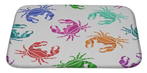 Gear New No Slip Microfiber Memory Foam Pattern of Crabs Bath Rug Mat, 34" X 21"
