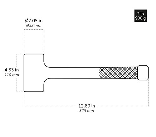 - Its head’s diameter is 2.05” and the handle is 12.8” long. The larger diameter of its head prevents the ricochet effect when working with stone, wood, tile etc. This makes the mallet safer to use and more efficient.