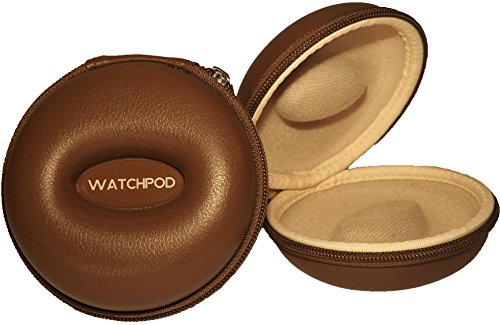 -. Title : WATCHPOD Travel Watch Case, Single Watch Box w/ Zipper For Storage, Cushioned Round & Portable, Fits All Wristwatches & Smart Watches Up To 50mm, Leatherette Brown