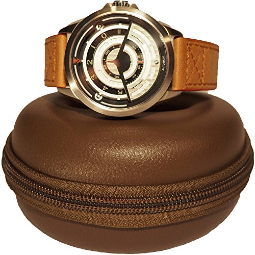 -. Feature : HIGH QUALITY MATERIALS; Constructed with a premium brown leatherette exterior and ultra soft cream colored velvet interior, the robust chrome zipper is hardy and reliable / CRUSH PROOF; Built with a hard shell design, this single watch travel case is perfect for traveling or storing any kind of watch, luxury watch, smart watch or fitness tracker / COMPACT AND PORTABLE ; Deep concave center locks watch in place with minimal movement, POD shape is easy to fit into small spaces, fits all watches up to 50mm / UNIQUE STYLE; Classy and elegant, this single watch case looks handsome whether traveling or as a dresser accessory / ONE YEAR WARRANTY; Satisfaction Guaranteed, We will refund or exchange product no questions asked