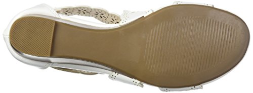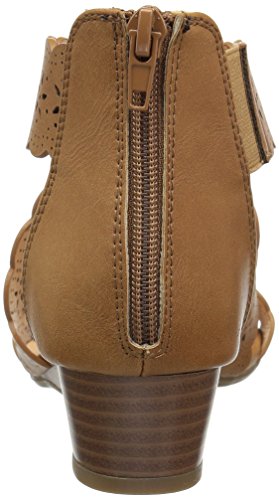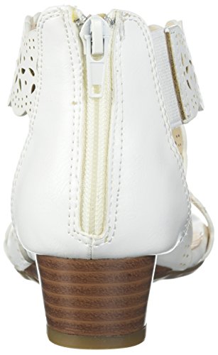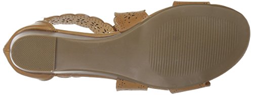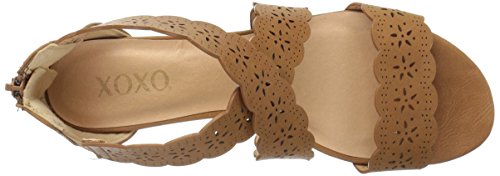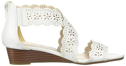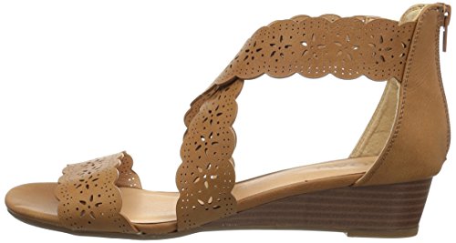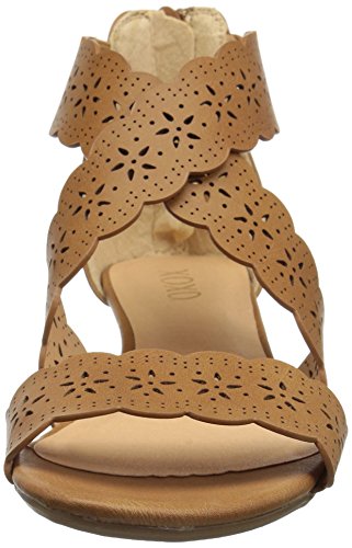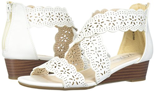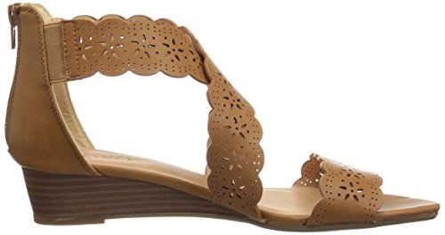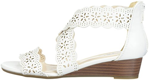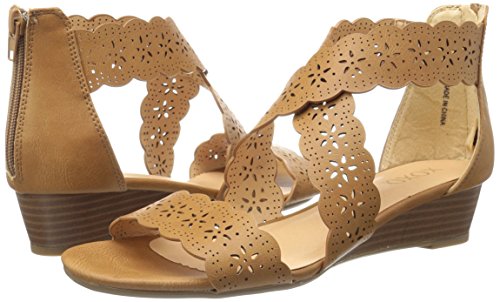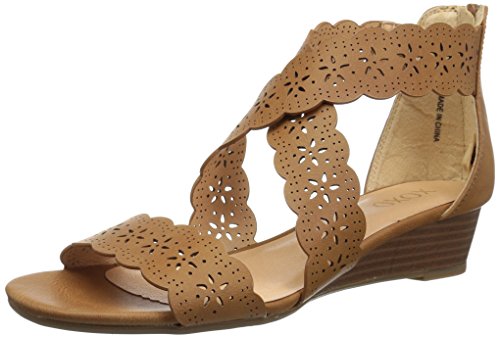 Product DescriptionOpen toe sandal on low wedge. Strappy upper design. Laser cut patterns. Back zipper closure.0