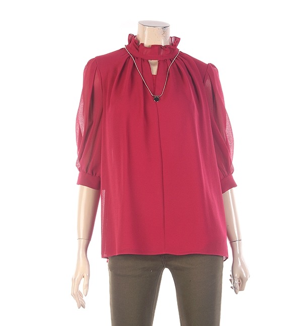 LYNN, 하늘하늘한 쉬폰 시스루로 여성스러운 느낌을주는 블라우스 입니다