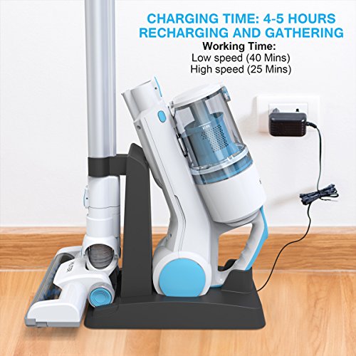 ※ CORDLESS - The cordless stick and handheld vacuum cleaner is designed with rechargeable Li-ion battery, full charging time 4-5hrs, working time: 40 min for normal mode, 25 min for full power mode, you can press the button on the handheld unit to change the suction power from 7 to 9kPa