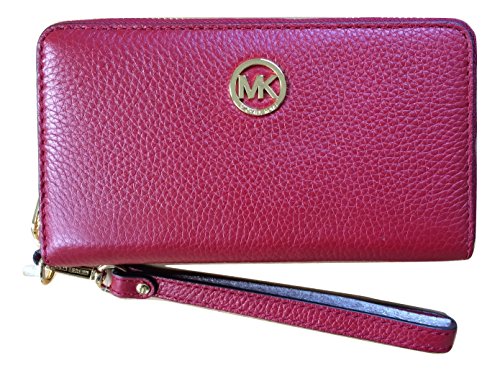 Michael Kors Fulton Large Flat Multifunction Leather Phone Case (Cherry)