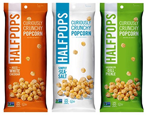 Halfpops Gluten Free Non-GMO Curiously Crunchy Popcorn 3 Flavor Variety Bundle, (1) Each: Brooklyn Dill Pickle, Aged White Cheddar, and Simply Sea Salt,...