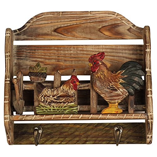 Comfy Hour 10" Hand Carved Wooden Farm Animals Chicken Double Coat Hooks Clothes Rack Decorative Wall Hanger