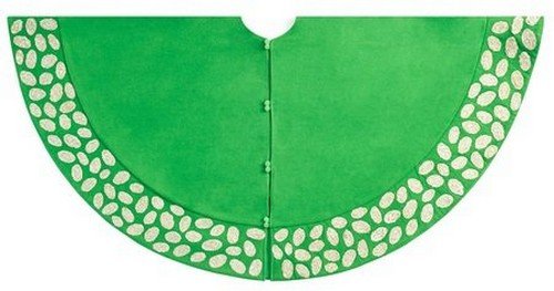 - Bright holiday Green tree skirt with popular Contemporary pebble pattern embroidered around the perimeter