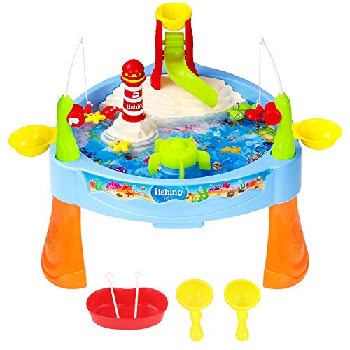 FISHING GAME SET, ZOOAWA ELECTRIC MAGNETIC ROD AND REEL TOY WATER PLAYING FUN PARADISE [25 PCS] WITH MUSIC AND LIGHT FOR BOYS AND GIRLS, KIDS AND TODDLERS OVER 3 YEARS OLD, COLORFUL