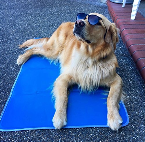 The cool pet pad is a revolutionary new self-cooling pet cushion that works without refrigeration, water, or electricity. It cools for 3-4 hours of constant use and recharges automatically after a brief period of non-use. No hassle filling with water. No mold, no leaks. Place on the floor, bed, crate, in the car or outside. It is non-toxic and safe for pets, people and the planet. This is cool; you do nothing and your pet will love you for it. The COOL PET PAD is weight or pressure activated; as soon as your 4 legged friend lies down the cooling effect starts. It will cool for up to 3-4 hours of constant use and will last for years. It re-charges itself automatically after a brief period of non-use. The COOL PET PAD comforting cushion cools and soothes and has aided in the relief of pain, swelling, discomfort and stress, as well as the following conditions: heat stroke, hip dysplasia, Cushing’s disease, allergies, post-surgery, skin conditions, post chemotherapy. It's great for older dogs when they get too hot. It's also incredibly convenient; it folds easily, wipes clean, is sturdy. Place it on the floor, on the bed, in the car, or even outside. Your pet will stay so cool; you may decide to get one for yourself. DO NOT LEAVE IN DIRECT SUNLIGHT, HEAT OR HOT AIR. This will affect the performance of the Cool Pet Pad. WARNING: This product is not meant for consumption. While the gel is non-toxic, we always recommend taking your pet to the veterinarian if they ingest any part of the Cool Pet Pad. In some cases, allergic reaction can occur which can affect the health of your pet. If your pet is prone to chewing, DO NOT leave it unattended with the Cool Pet Pad.Feature