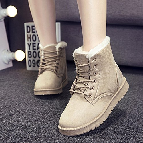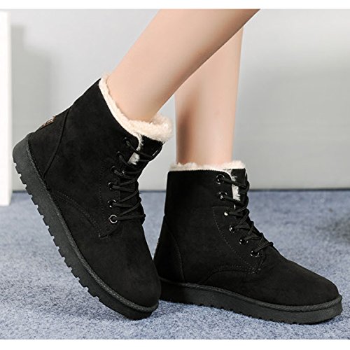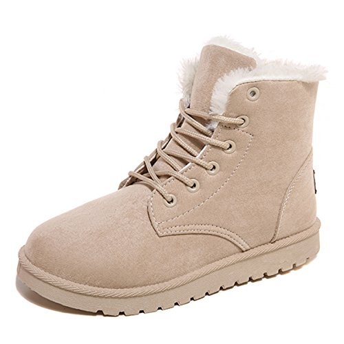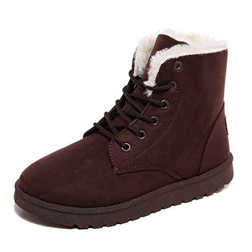 SAGUARO Womens Winter Warm Fur Lined Lace Up Ankle Snow Boots Trainer Sneaker