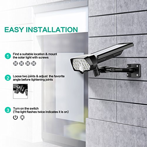 Litom Solar Lights Outdoor 17 LEDs, Safety & Security Solar Powered Motion Sensor Light with Muti-angle Adjustable, Wireless Waterproof Solar Spotlight for Front Door, Garage, Garden, Balony, Home
