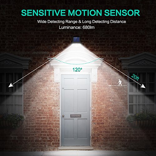 SUPER BRIGHT & WIDE RANGE: 17 LEDs design brings a super bright level of illumination and the most advanced motion-sensing PIR technology provides a long detecting distance at 20ft and 120°detecting angle