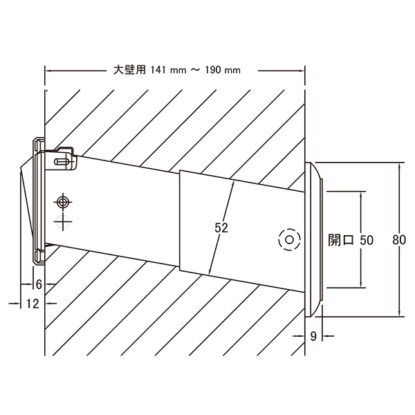 ●スペック:受口部:幅(mm)260 高さ(mm)66 取出し口開口寸法:幅(mm)202 高さ(mm)50  壁厚調整範囲141~190mm