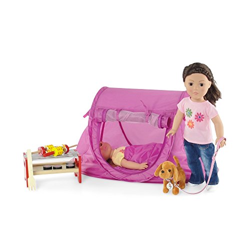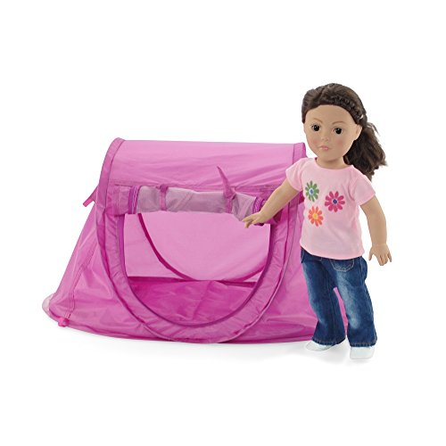 - Pop-Up - no poles and no need to build! Tent has plenty of room for 1-2 dolls and plenty of their doll clothes & clothing accessories.