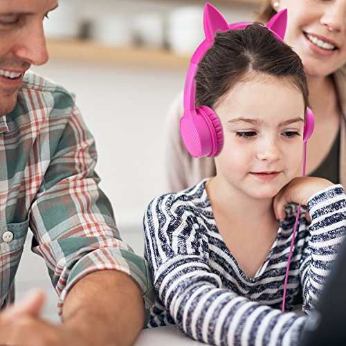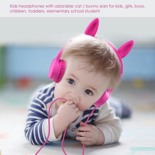 -. Feature : ❤ Ideal gift with adorable cat / bunny ear for kids, girls, boys, children, toddlers, elementary school student / ❤ Volume control technology ensures the sound is within recommended safe levels 85db for young children / ❤ Kids headphones made with tangle-free cords, twistable, bendable, stretchable headband ensure a long lifespan. The durable, 1.2 m cable resists snags and tangles / ❤ On-ear headphones with adjustable headband, swivel ear cups and cushioned & pressure-relieving ear pads ensure a perfect fit / ❤ Ultra-lightweight design for kids age 3 and up. Kids headphones can be fold flat for compact storage. 12-month worry-free warranty (Free replacement or refund)