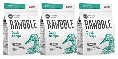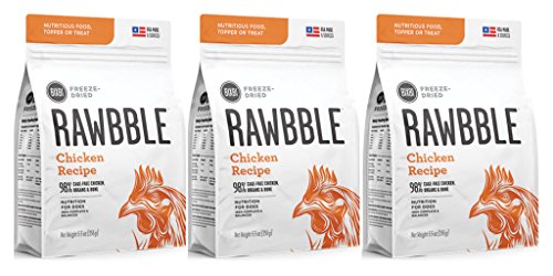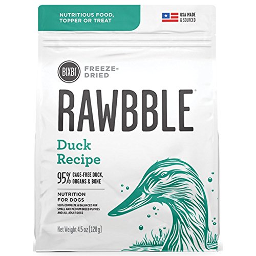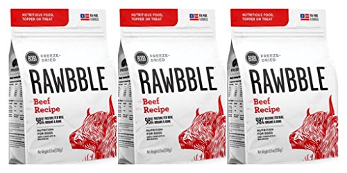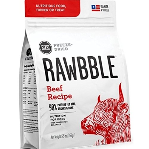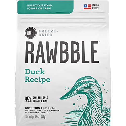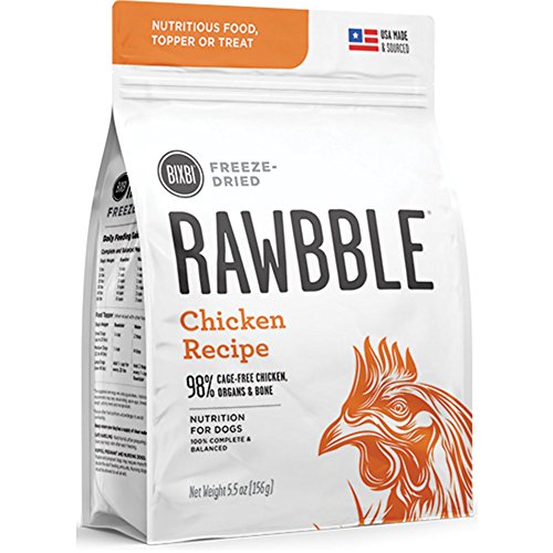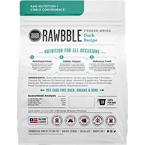 There is a subtle, but important difference for Bixbi between "dog food" and "food for dogs." One is adequate. One is exceptional. Bixbi chooses exceptional. RawbbleTM blends quality, nutrition and convenience in a way not previously seen in a complete and balanced food for dogs. NUTRITIOUS -- Dogs instinctively thrive on essential nutrients from the whole animal; raw animal protein, bones and vital organs. RawbbleTM is a balanced ratio of protein, fat, bones, organs, vitamins and minerals to support health. CONVENIENT -- RawbbleTM can be conveniently stored in its sealed bag, at room temperature, without refrigeration. The small pieces make handling and daily feeding easy and are great for training, treating and traveling. SAFE -- RawbbleTM only uses USDA certified animal proteins from the USA. Bixbi's small batch freeze-drying technology locks in important nutrients, and their oxygen removal process ensures freshness in every bag, Raw Nutrition + Kibble Convenience. Just 2oz of RawbbleTM is equal to 8oz of conventional dog food.Feature