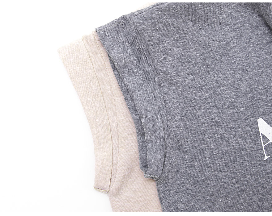 가슴에 영문 레터링 나염 포인트로 세련된 느낌을 주었으며,