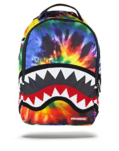 -. Feature : Sprayground Tie Dye Chenille Shark Backpack / PRODUCT DETAILS Exterior Dimensions: 18" x 6" x 11.5" Front zipper pocket Side zipper pockets Separate Velour sunglass compartment Zippered Stash pocket Ergonomic mesh back padding Adjustable Straps for custom sizing Nylon Zippers with Metal Hardware Interior Separate Laptop compartment Separate tablet compartment Mesh organizer pocket Fabric Durable 900D water-resistant fabric Details Chenille Embroidered Shark Design