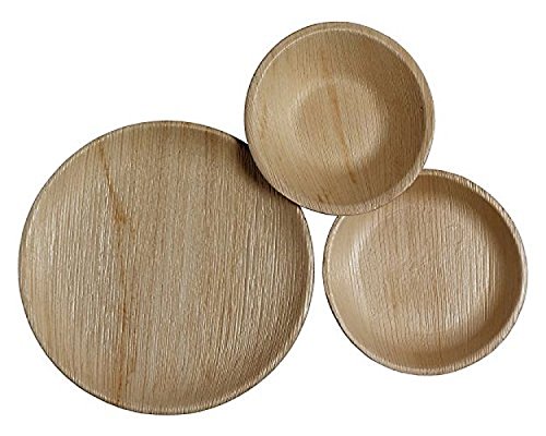 CaterEco 75 Piece Palm Leaf Round Dinnerware Set - 25 10" Dinner Plate, 25 7" Sqare Salad Plate, 25 Soup Bowls - All Natural 100% Compostable Disposable Party Plates