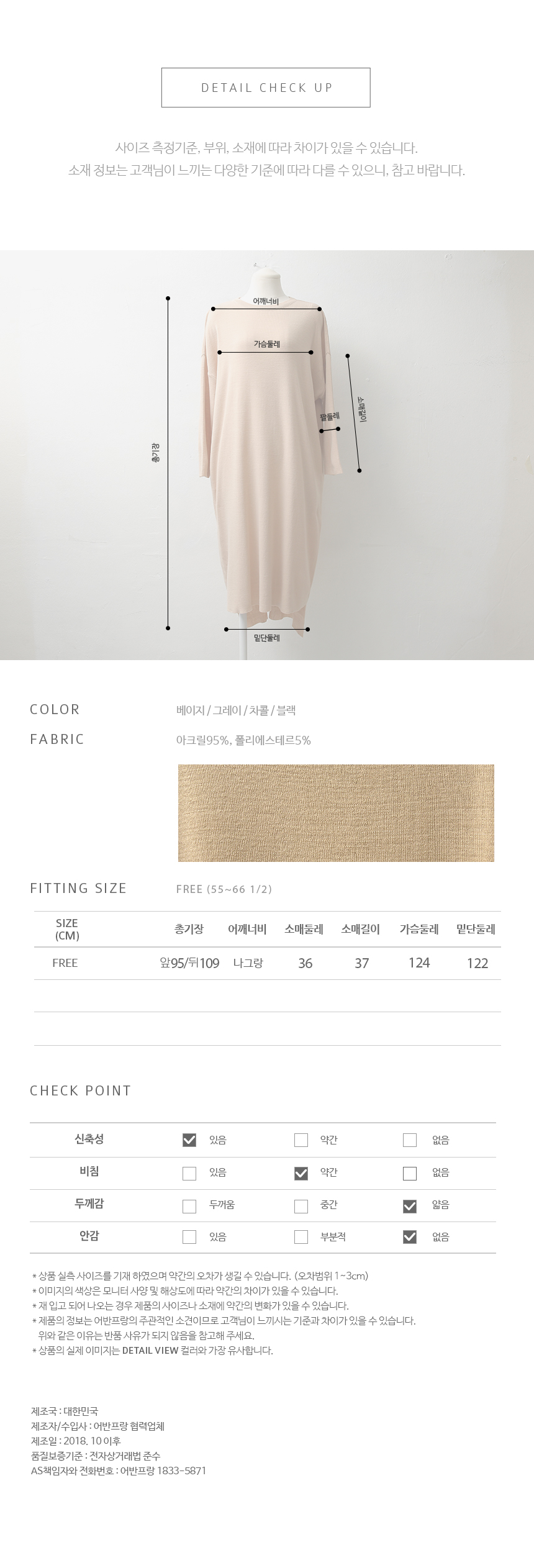 아크릴, 폴리 혼방으로 매트하고 부드러우며 먼지가 적은 소재감으로 여성스럽게 흐르는 군더더기 없이 심플한 라인이 좋아요!