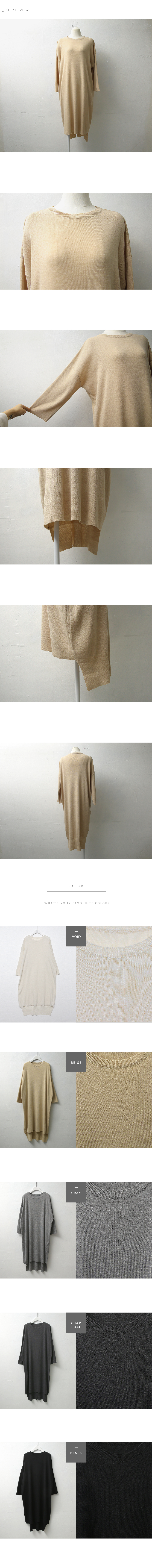 살랑살랑 부드럽게 바디라인을 따라 흐르는 두껍지 않은 소프트한 질감의 니트 소재가 매력적인 앞, 뒤 언발 심플 롱 원피스예요.
