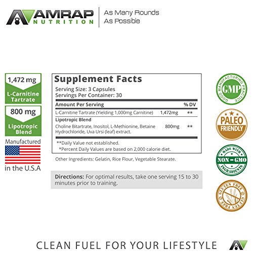 FAST & EFFECTIVE WEIGHT LOSS: Carnitine is a natural amino acid derivative that converts fat into energy. When used as a preworkout supplement, each AMRAP Nutrition Carnitine Plus capsule provides 1,000mg of this powerful fat-burning nutrient to help you lose weight quickly and easily.