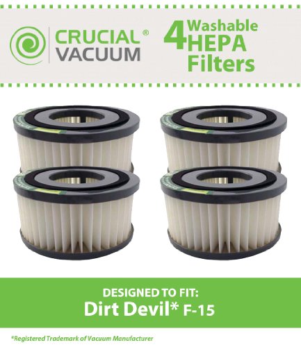 -. Title : 4 Replacement for Dirt Devil F15 HEPA Style Filter, Compatible With Part # 1SS0150000 & 3SS0150001, Washable & Reusable, by Think Crucial