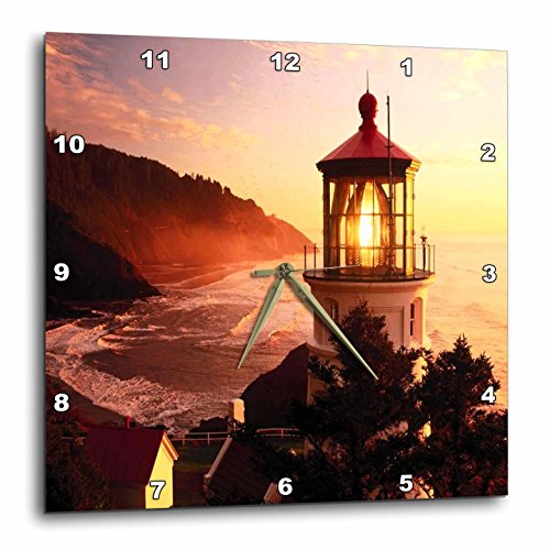 Lighthouse at devils elbow park Oregon wall clock is a wonderful complement to any room in your home or office. Made of durable high grade aluminum. This frameless clock has a high gloss mirror like, UV coated, scratch resistant finish and is suitable for a moist environment. Sizes available range from 10" x 10" to 15" x 15". Requires one aa battery; not included. Battery box is not covered.Feature