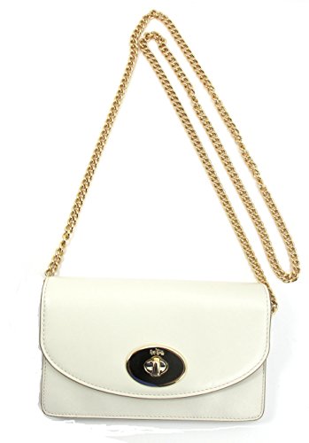 -. Brand : Coach -. Color : Chalk/Beige -. Department : womens -. EAN : 0888067742473 -. Feature : Removable Chain Link shoulder strap in Light Gold hardware / Turn lock closure / Exterior slide in back pocket / Interior 2 deep pockets for currency, multifunction pockets, zip Pocket, card slots / Dimensions: 7" (L) x 4.25" (H) x 1.25" (W) in -. Model : 53277 -. ProductGroup : Shoes -. ProductTypeName : HANDBAG -. Size : Small -. Title : Coach Metallic Leather Clutch Chainlink Wallet Chalk/Beige 53277 -. UPC : 888067742473 Gorgeous Grained Metallic Leather Clutch Chain link Wallet. Great design for every use, travel or a night on a town.