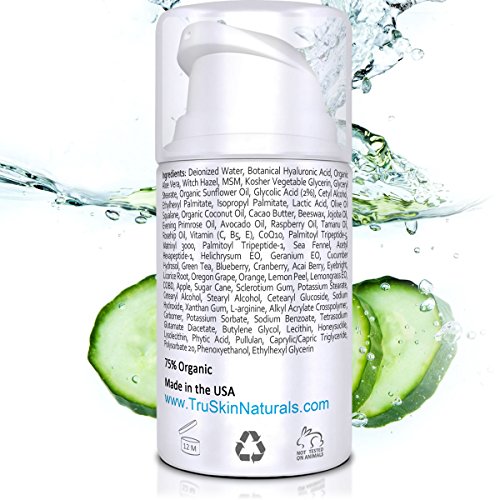 -. Feature : REJUVENATIVE & PREVENTIVE THERAPY FOR THE MOST FRAGILE AREA OF THE FACE - Potent Antioxidants and Plant Peptides merge in a deeply moisturizing & gentle formula to protect the delicate, hard-working skin around eyes. We've crafted this formula around two of nature's most powerful humectants - Botanical Hyaluronic Acid and Panthenol (vitamin B5) - to naturally replenish hydration and diminish the appearance of fine lines. / COMPREHENSIVE ANTI-AGING COMPLEX - Restorative blend of MSM, Glycolic Acid, Beeswax, Vitamin C, Vitamin E, Tripeptide-5, Matrixyl 3000 & Sea Fennel, pairs with future-focused CoQ10 and Organic Green Tea in a silky Eye Cream to neutralize free radicals and promote & preserve youthful skin structure. / NATURE'S MOST EFFECTIVE HEALING & SOOTHING INGREDIENTS - Formulated to deeply moisturize the fragile eye area with lipid-rich Sunflower, Olive, Avocado, Tamanu, and Coconut oils while dedicated eye specialists like Cucumber, Eyebright and Organic Licorice soothe, brighten, and reduce inflammation for more rested-looking eyes. / CRUELTY-FREE - TruSkin Naturals is Leaping Bunny certified as a cruelty free company. Our products, and the ingredients in them, are never tested on animals. Made in the USA. / ◀ - 100% CUSTOMER SATISFACTION GUARANTEE - ► TruSkin Naturals is a different kind of company that offers the absolute best customer service in the industry. If for any reason you decide that this product is not for you, you have a ★ FULL 3 MONTHS ★ to send 1 simple email and receive a 100% money-back refund, absolutely no questions asked (in fact, you don't even have to return the bottle).