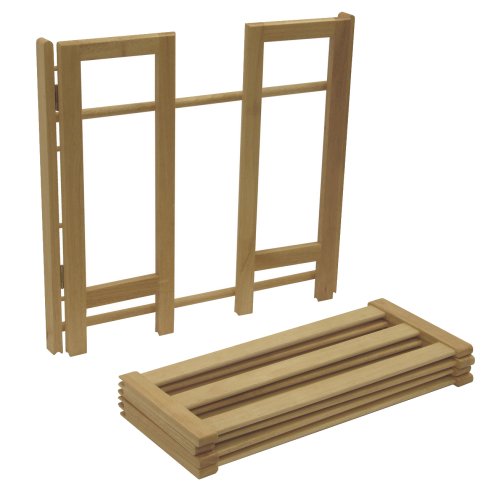 - Feature : Foldable 4-tier shoe rack is stackable and stores flat / Crafted of solid beechwood with natural finish / Holds up to 19 pairs of shoes for an organized closet / Slatted shelves and open sides offer light, airy look / Measures 27.8-inch wide by 11-1/2-inch deep by 25.9-inch high