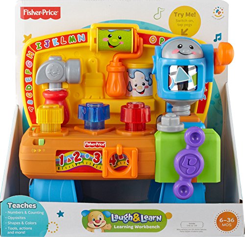 Developed for babies between 6 and 36 months, The Fisher-Price® Laugh & Learn™ Learning Workbench packs a number of developmental benefits for baby, and only makes it look like work. In reality? It’s one fun moment after another, with learning built right in! Through the numerous activities, colors and sounds, baby will gain better sensory perception through the lights, sounds and sights which will stimulate his/her senses. Fine motor skills get polished and tuned through the spinning, sliding and tapping mechanisms, which also improve eye-hand coordination.