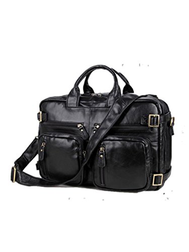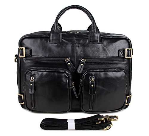 -. Feature : 100% brand new & High quanlity / Dimension 15.5" W x 11.5" H x5" D Weight 1.55kg / Material: buffalo leather / The bag has a reinforced carry handle and an adjustable and removable shoulder strap. When you hook the strap to different D-rings, the bag can turn to be either a shoulder bag or a backpack.? / Outside there are six zipped pockets in the front and one zipped pocket at the back, where you can put many daily items, such as your keys, cigarette case, cards, etc. Inside there are two main zipped compartments, one with a zipped pocket, the other with two open pockets fit for your cards, wallet or mobile phone. The main compartments are capable of a computer of 17 inches.