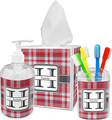 -. Brand : RNK Shops -. Color : Grey -. Feature : YOU WILL RECEIVE AN EMAIL WITH A LINK TO CUSTOMIZE YOUR ORDER WITHIN 1 BUSINESS DAY / Custom P.R.Inted with Your Design / 3 piece set / Inserts P.R.Inted on premium gloss media / Vibrant, colorful design -. Label : Mom Innovations -. Manufacturer : Mom Innovations -. MPN : mi-bath-acc-bundle+193555 -. PartNumber : mi-bath-acc-bundle+193555 -. ProductGroup : Home -. ProductTypeName : HOME_BED_AND_BATH -. Publisher : Mom Innovations -. Studio : Mom Innovations -. Title : Red & Gray Plaid Bathroom Accessories Set (Personalized)