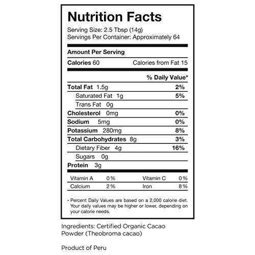 • Unrefined, Non-GMO and Certified Organic - unlike traditional cocoa, Viva Labs Cacao Powder is unprocessed, retaining important nutrients like magnesium, calcium, iron, fiber and protein.