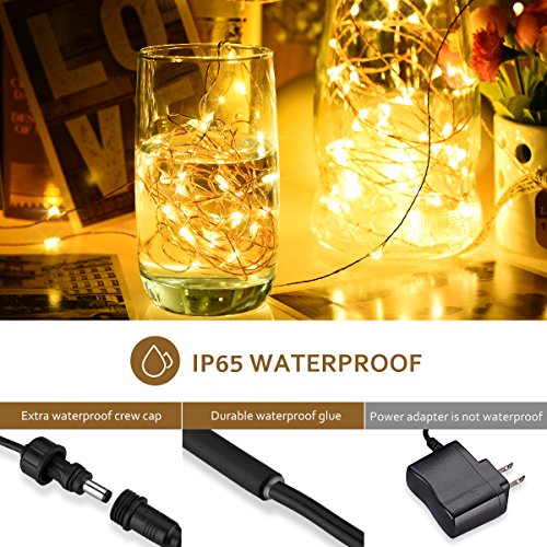 BRILLIANT LED STRING LIGHTS: 100 brilliant LED glow a warm white light, which make every night romantic starry nights. Ideal for indoor and outdoor decoration, bedroom, patio, lawn and garden, deck, porch, gate, yard, wedding, party etc.