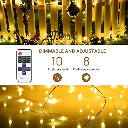 The LED string light is controlled by improved sensitive remote controller within the controlling range of 49ft in an open space. 8 variable mode and 10 brightness level settings provide the perfect solution for your lighting needs.
