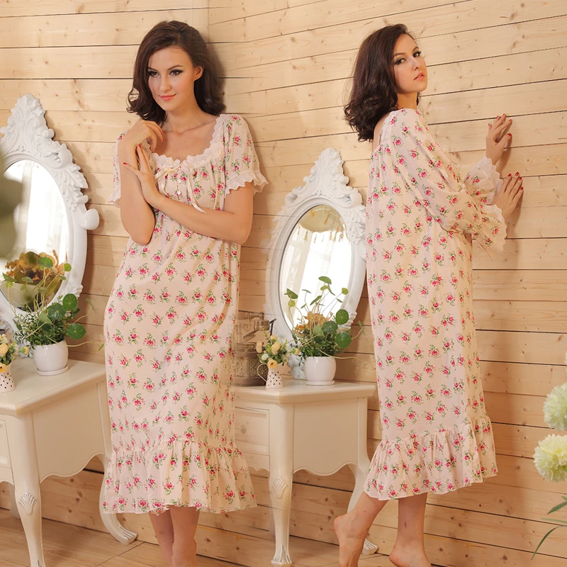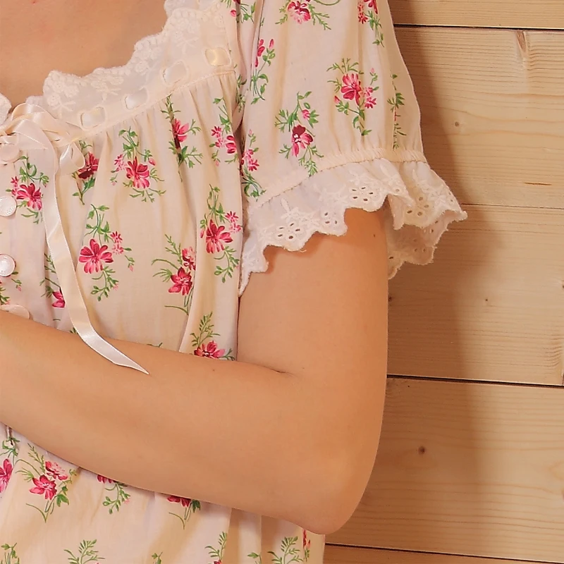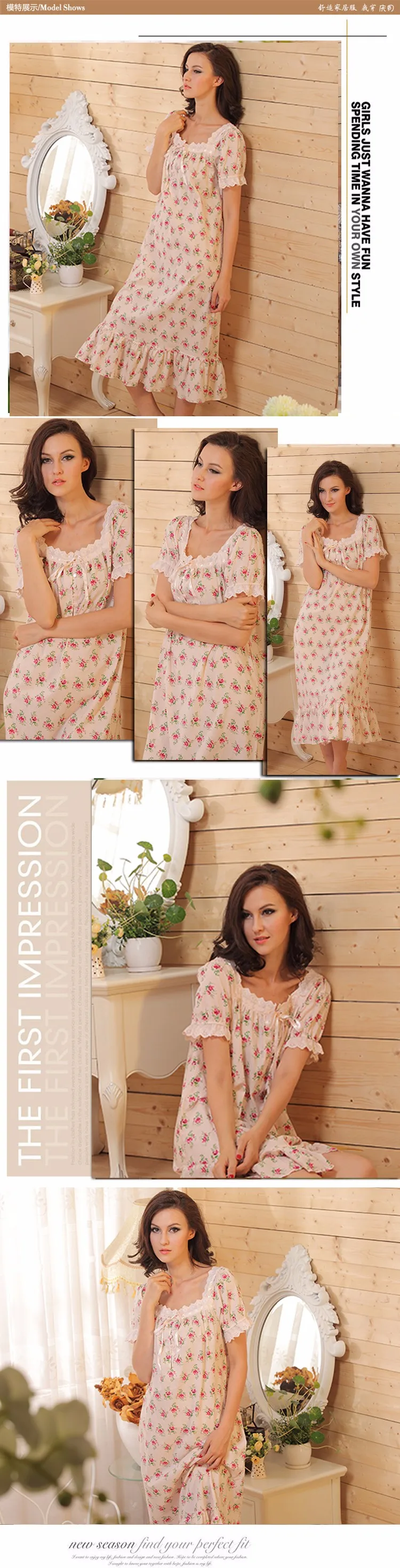 Model Number:floral short sleeve long nightgown
