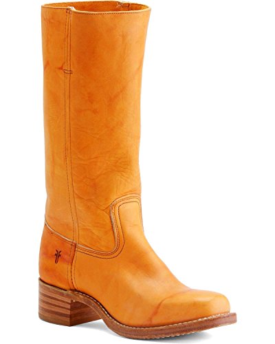 Amazon.com Product Description This Campus boot from Frye has a rugged character and rough attitude, but exudes nothing but pure, feminine design. The attractive, western design has a pull-on construction of oiled leather with contrast welt stitching, a durable leather outsole, and a cushioned insole for additional support and comfort. 0