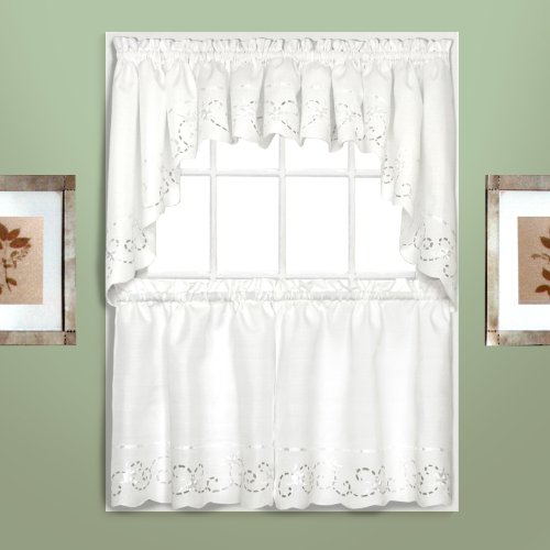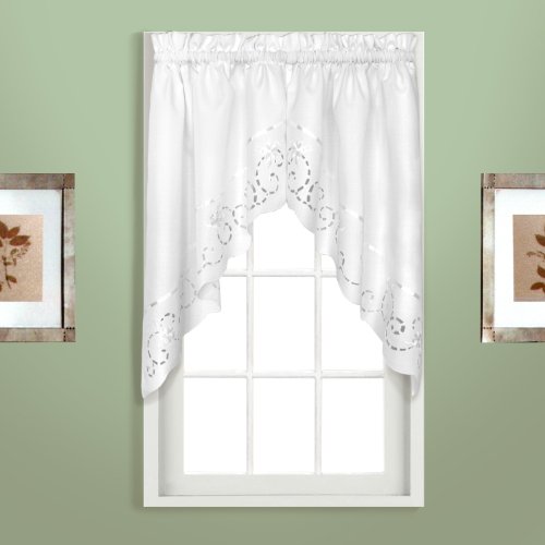 United Curtain Rachael Embroidered Swags, 60 by 30.5-Inch, White, Set of 2