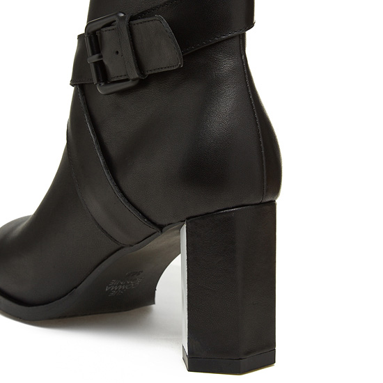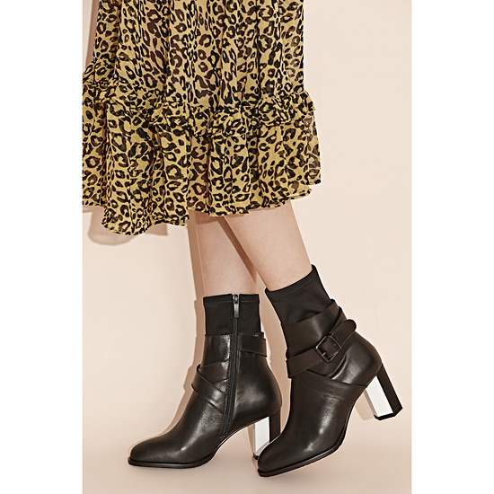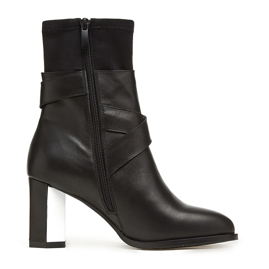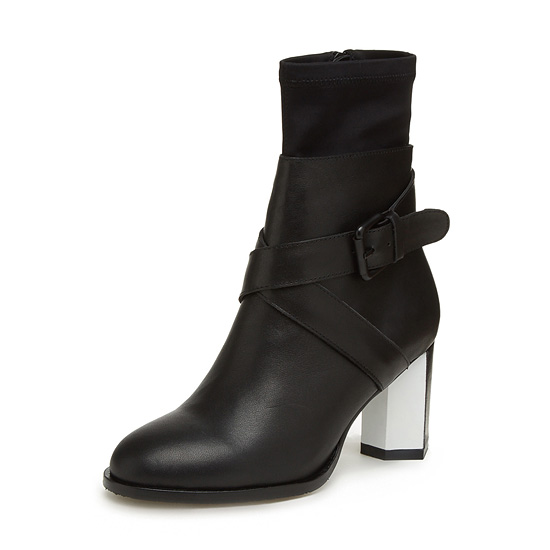 - 절개된 굽과 네오플렌 소재가 포인트인 하프 앵클부츠.