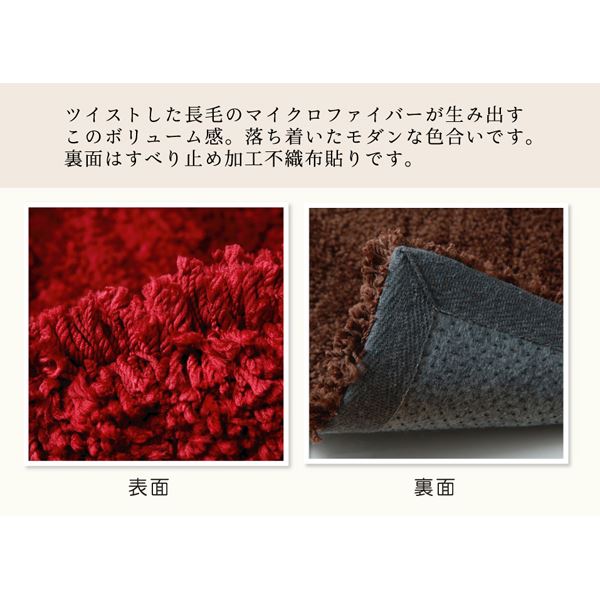 マイクロファイバー糸を使用した柔らかな肌触りの商品です。上品な色合いで玄関を彩ります。パイルの長さを変え、凹凸を出すことで、無地でありながらグラデーションのように仕上げました。裏面には床を傷つけにくい不織布に滑りにくい加工を施しています。
