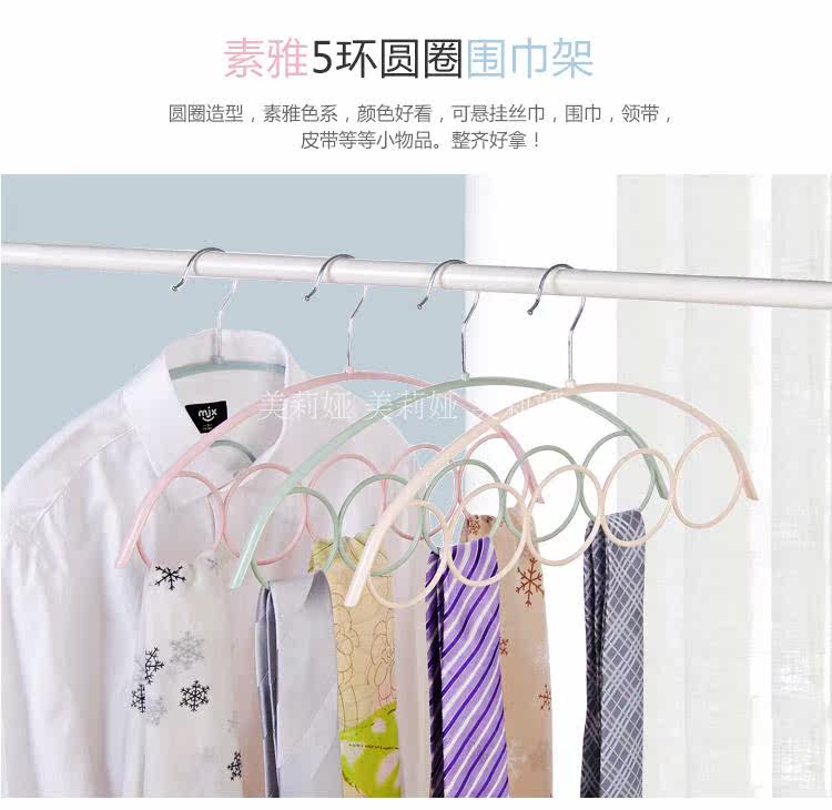 围巾丝巾5环架 衣柜收纳圈圈领带挂架家用防滑塑料成人皮带衣架子