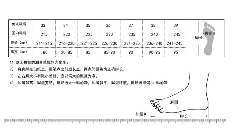 This shoes is standard size.If your foot are chubby type,you may choose one size bigger.Please measure and choose carefully before place the order,NOT exchange are allowed !