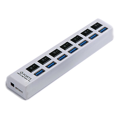 LED indicators display the status of power supplied to each USB connection | Features 7 USB 3.0 compatible ports with built-in surge protection