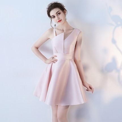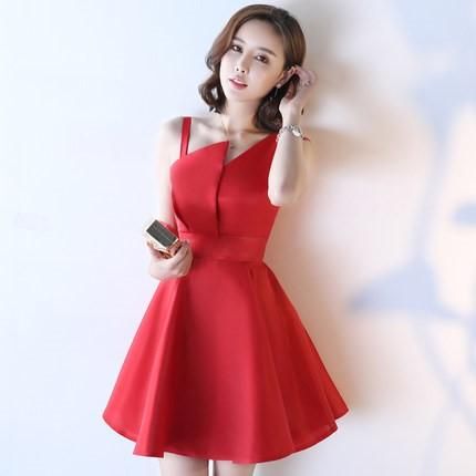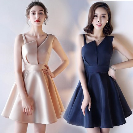 ワンピース パーティードレス ミニ丈 肩ストラップ レディース アシメントリー ノースリーブ フレア Vネック エレガント 上品 大人 drgz0779