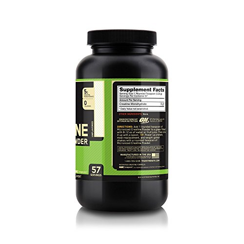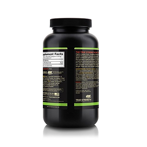 Studio : Optimum Nutrition Publisher : Optimum Nutrition Binding : Health and Beauty Product Description Each serving supplies a full 5 grams of 99.9-Percent Pure Creapure brand Creatine monohydrate. This tasteless, odorless powder mixes easily in water or juice and stays in solution longer. Because it's unflavored, you can stack ON's creatine powder with protein shakes, gainer formulas and other sports nutrition powders. 0