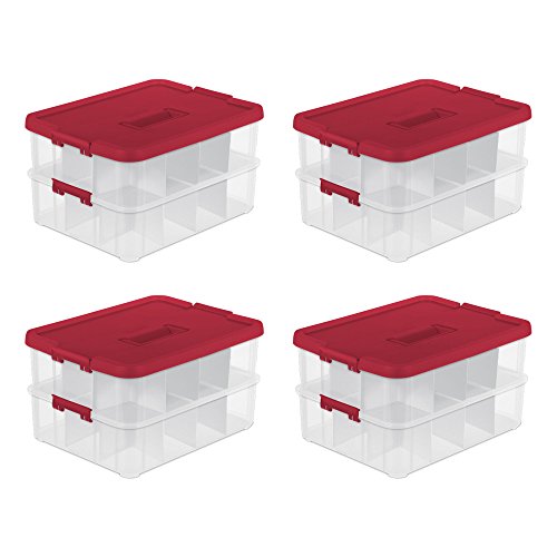 Studio : Sterilite Publisher : Sterilite Binding : Kitchen Product Description Keep all of your Christmas ornaments safe and organized with the help of these Sterilite 24-Compartment Christmas Ornament Boxes. This box stacks with other units to save space and features see-through latched layers for easy access to enclosed items. The handle of the lid makes the box easy to carry in and out of storage, while the 24 compartment capacity holds plenty of ornaments of varying sizes. Don't stress about keeping your ornaments safe after the holidays are over. Choose the Sterilite 24-Compartment Christmas Ornament Box and leave your worries behind. 0